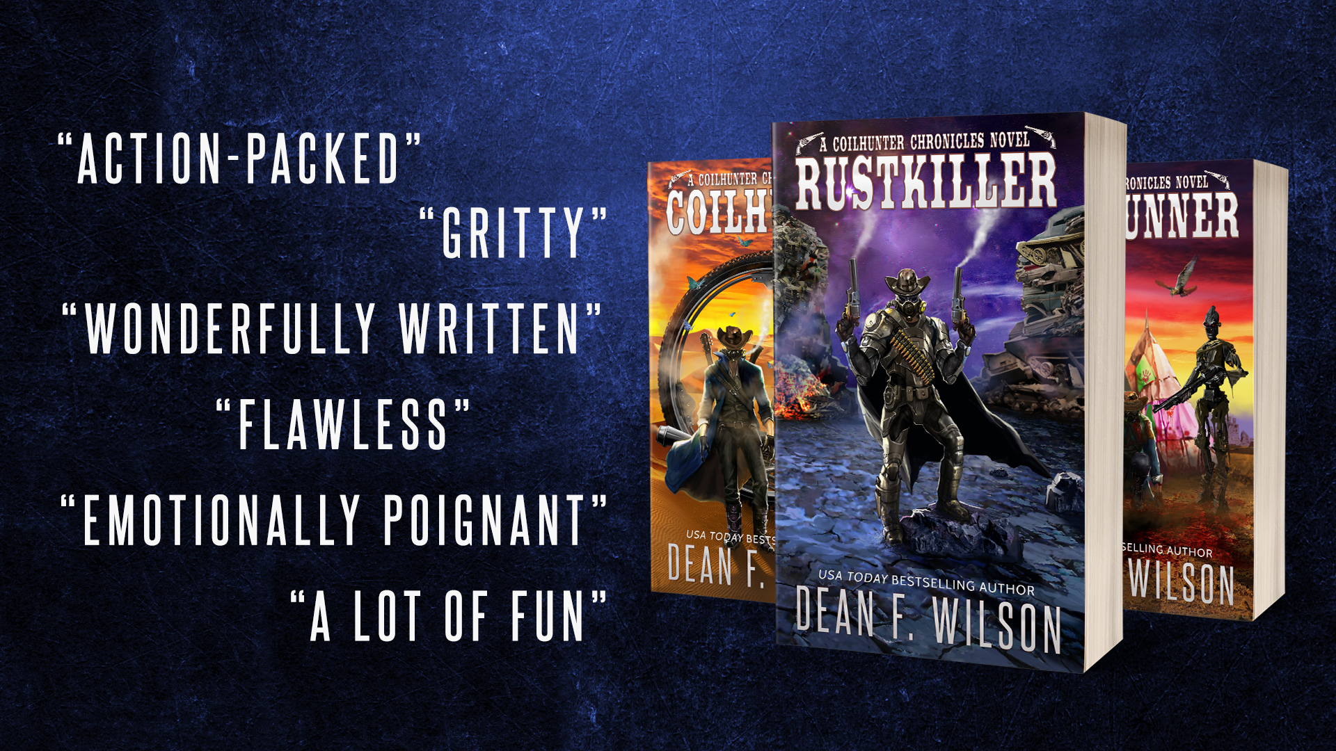"Steampunk Batman meets A Fistful of Dollars (and later, the Borg). ... The pace is as breakneck as that summary: each chapter goes by fast, ending with cliffhangers that segue smoothly into the next. Action continues nearly non-stop, with gunfight after gunfight. Where The Coilhunter Chronicles shines is the omniscient narrator. You could almost hear Clint Eastwood’s voice. Wilson does a brilliant job of playing with words to come up with maxims about how tough life is in the Wild North, while personifying the sun, the land, etc., as dangers." — Fantasy-Faction